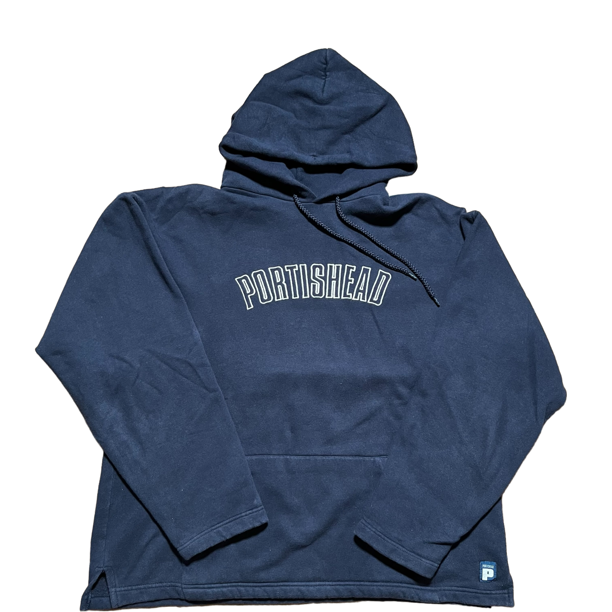 Super good embroidered Portishead hoodie with patch and split hem. Portishead tag. Fits XL.