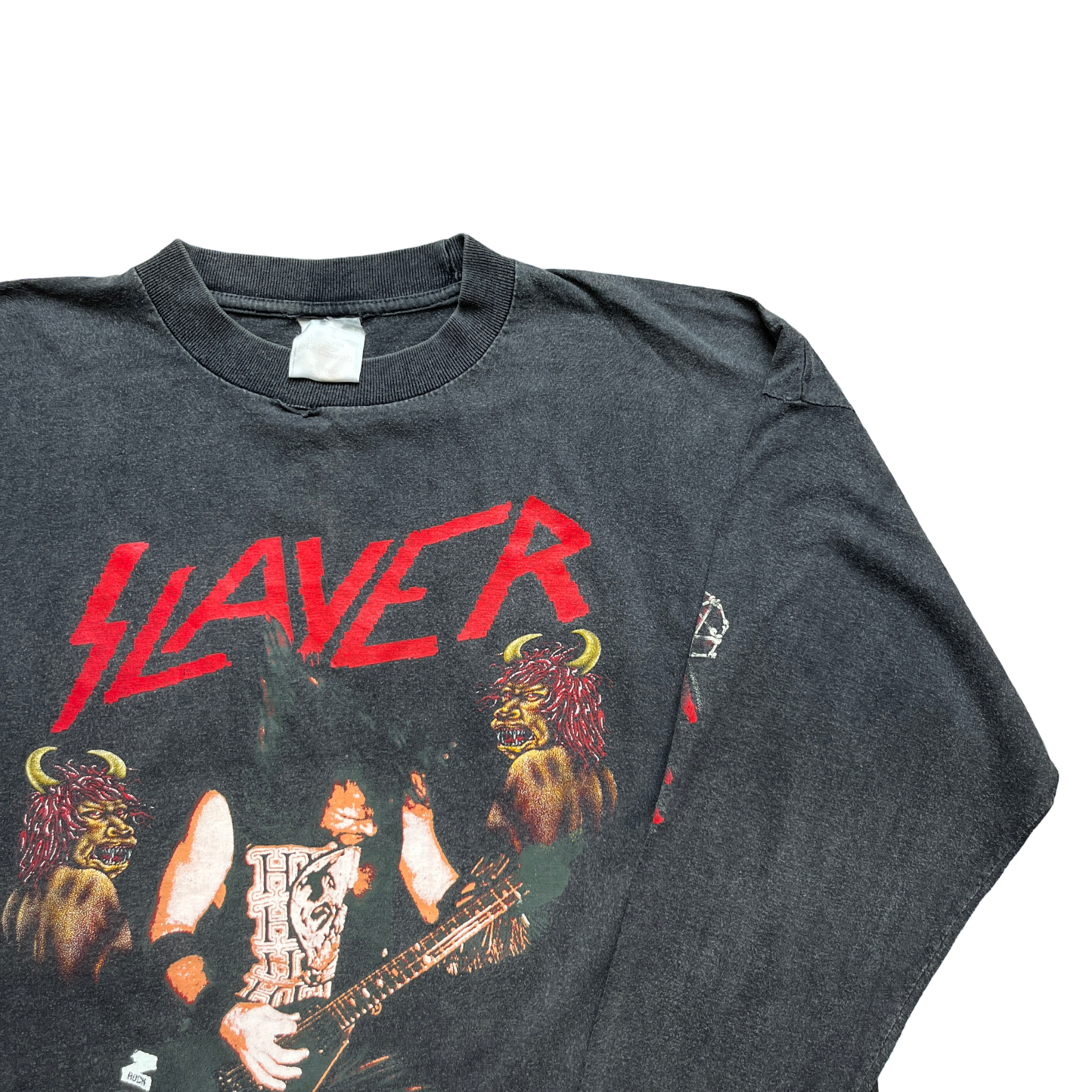 The best Slayer t-shirt we've ever seen. Spiral Designs copyright. Faded tag. Fits XL. Single stitch.