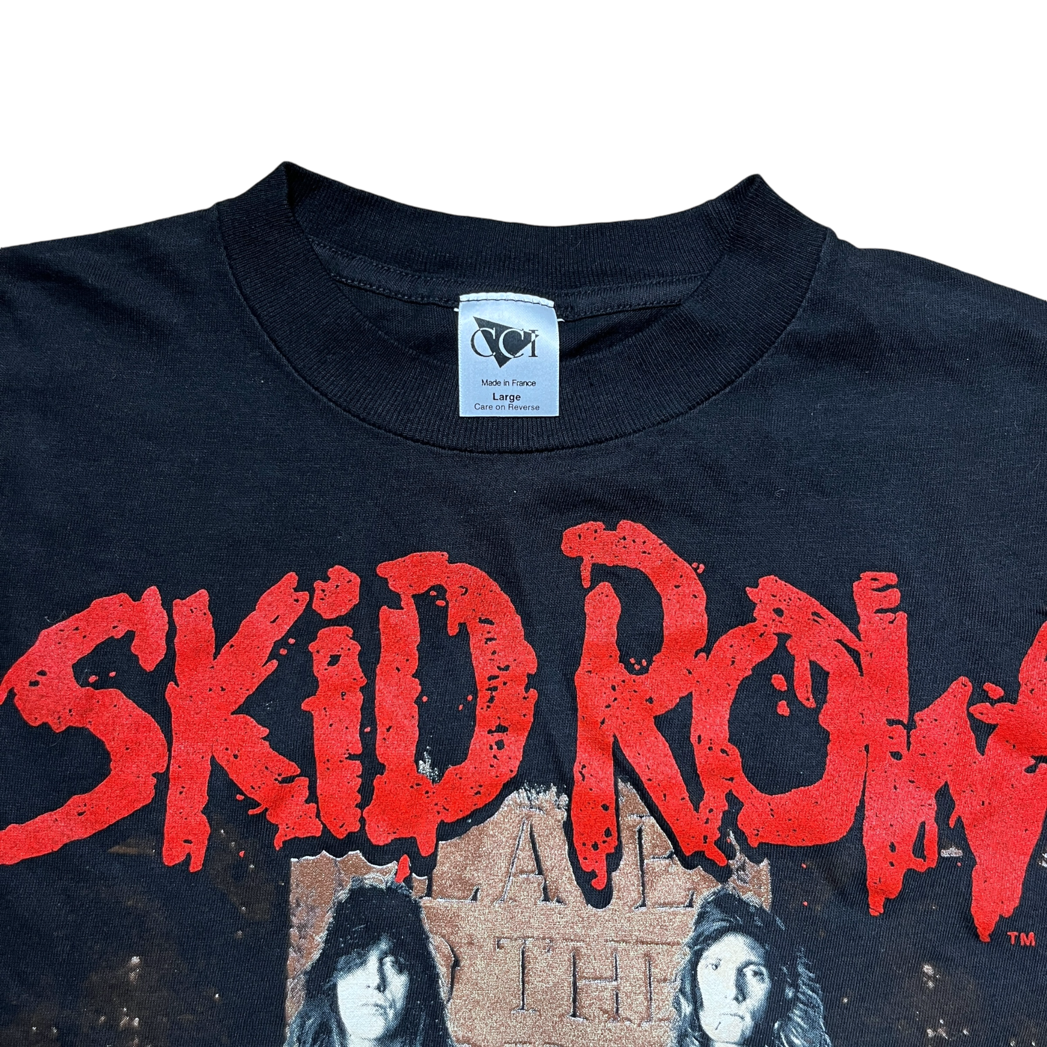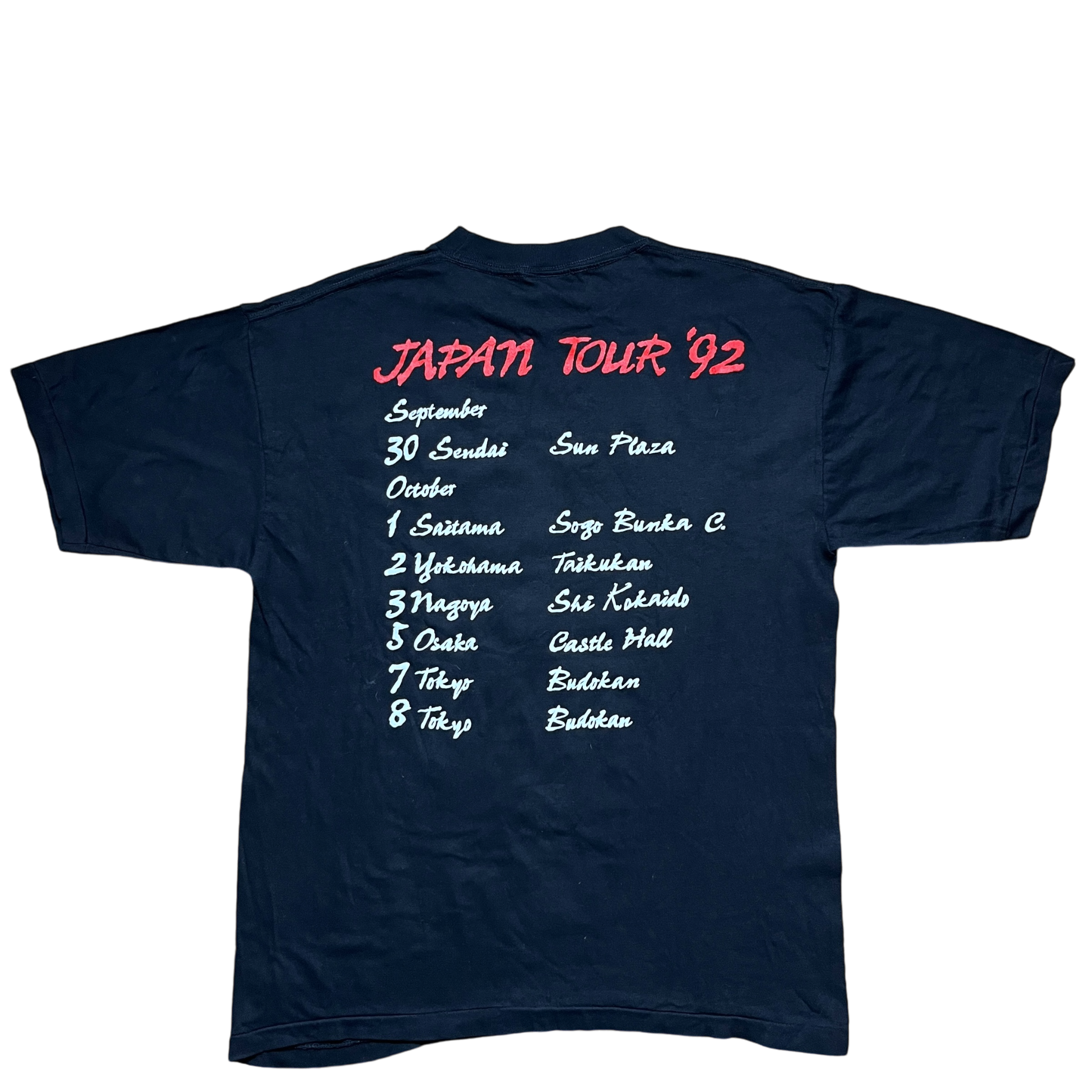Skid Row Japan Tour t-shirt fra 1992 med klassisk bandfoto på fronten og tourdatoer på ryggen. 1990 Skid Row copyright. CCI tag størrelse L. Fitter L. Single stitch.