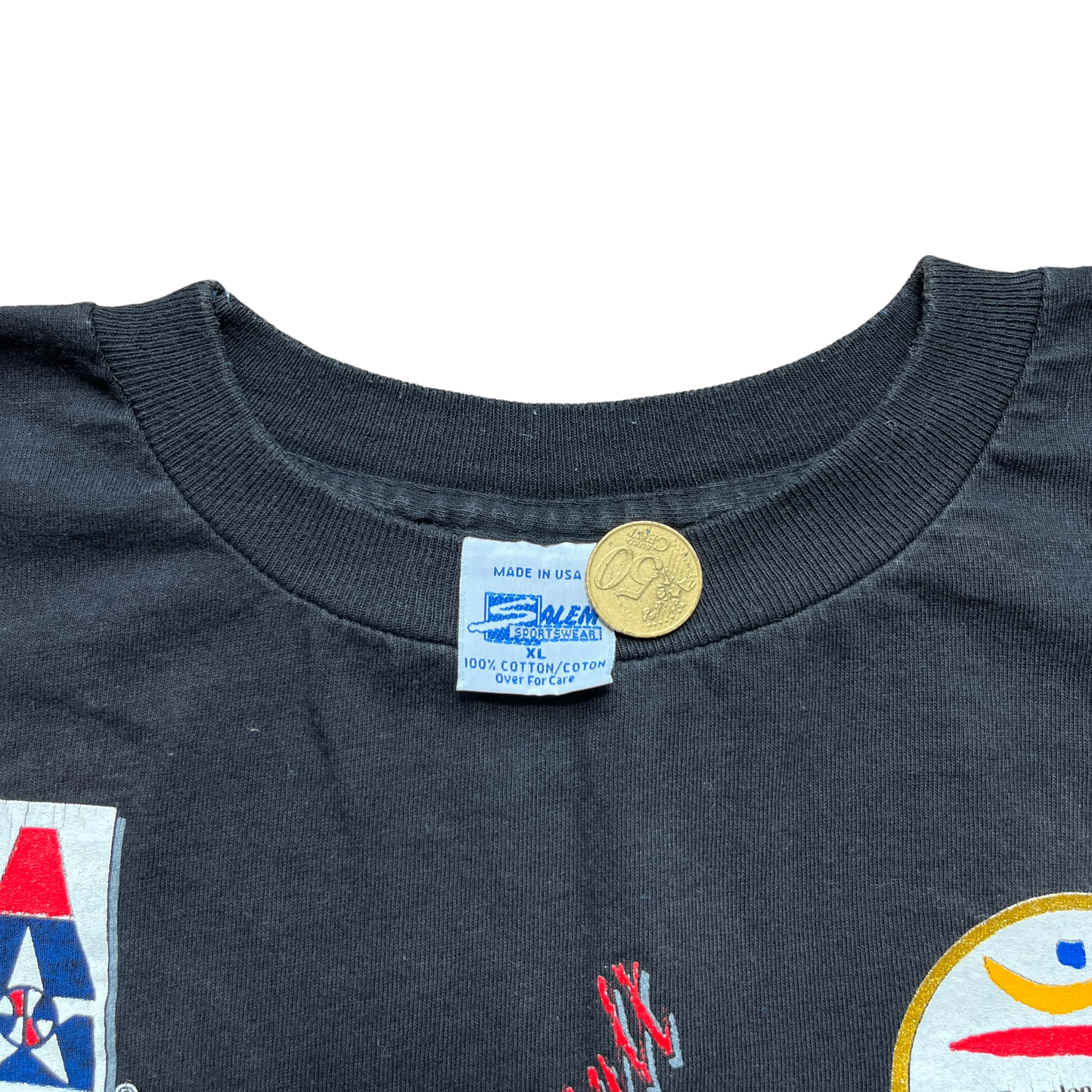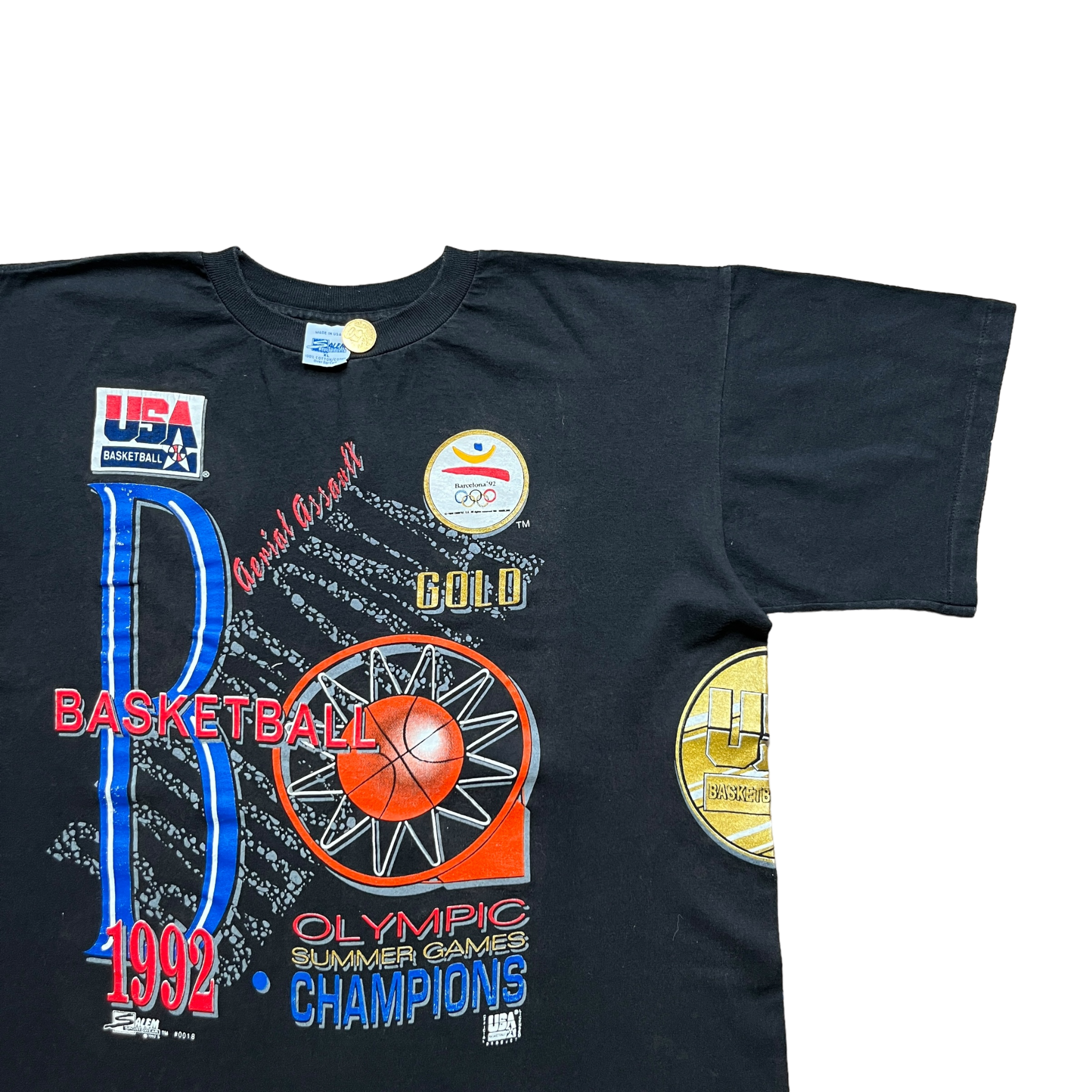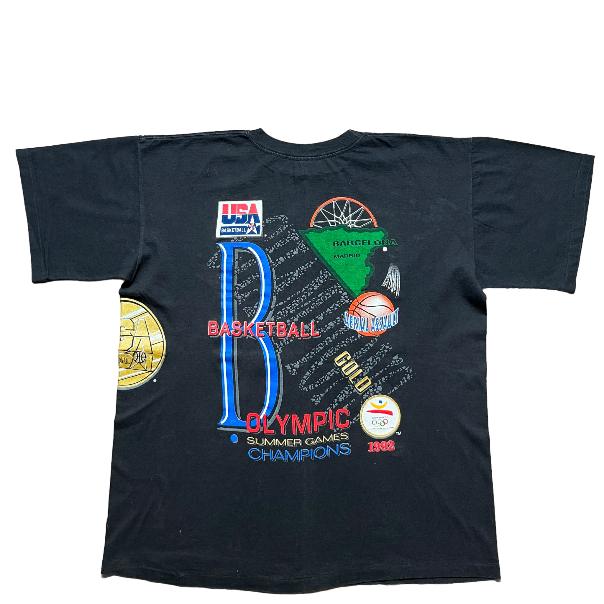 USA Basketball t-shirt fra OL i Barcelona 1992 – året hvor Dream Team fuldstændig dominerede og tog guldet hjem. Grafik i topklasse, Salem Sportswear copyright fra 1992. Single stitch. Fitter XL.