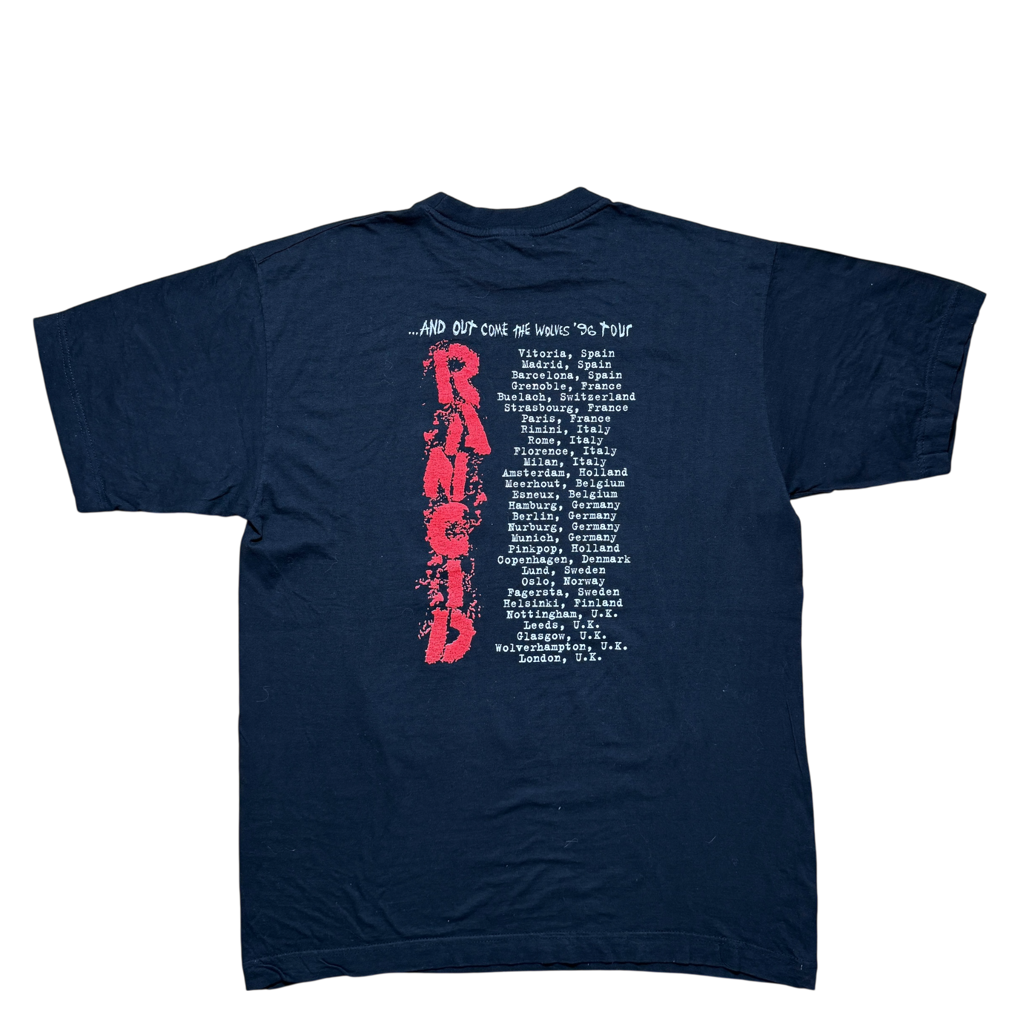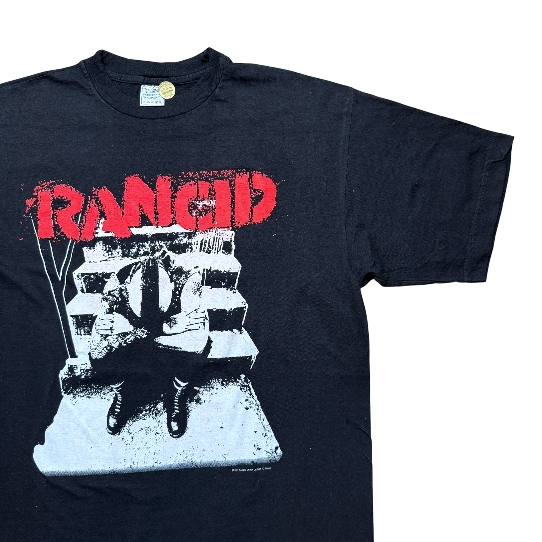 Rancid i midten af 90erne, hvor bandet stod som et af de stærkeste navne på den amerikanske punk-scene. Denne tour tee fra 1996 rammer netop den æra med et råt, sort-hvidt motiv og det klassiske røde logo i toppen. 1995 Rancid copyright. 100% cotton tag størrelse XL. Fitter Large.