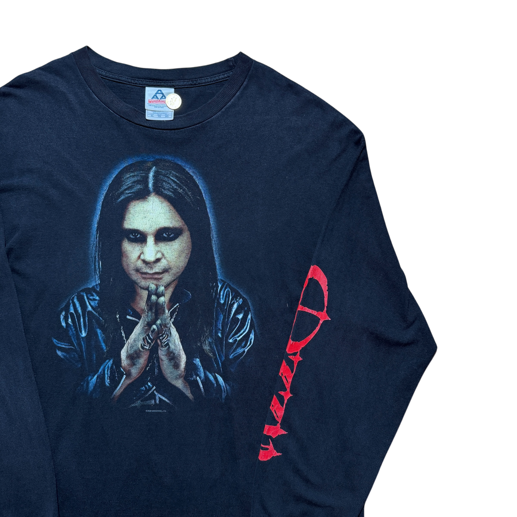 Portrættet af Ozzy Osbourne på fronten rammer perfekt begyndelsen af 00ernes æra, hvor hans solokarriere fik et nyt publikum gennem både turneer og den ikoniske TV-eksponering. Det mørke, næsten hellige motiv står stærkt på den sorte long sleeve, mens det røde Ozzy-print ned ad ærmet giver den klassiske tidlige 00er-nu metal æstetik. 2002 Monowise copyright. AAA-tag størrelse XL. Fitter XL.