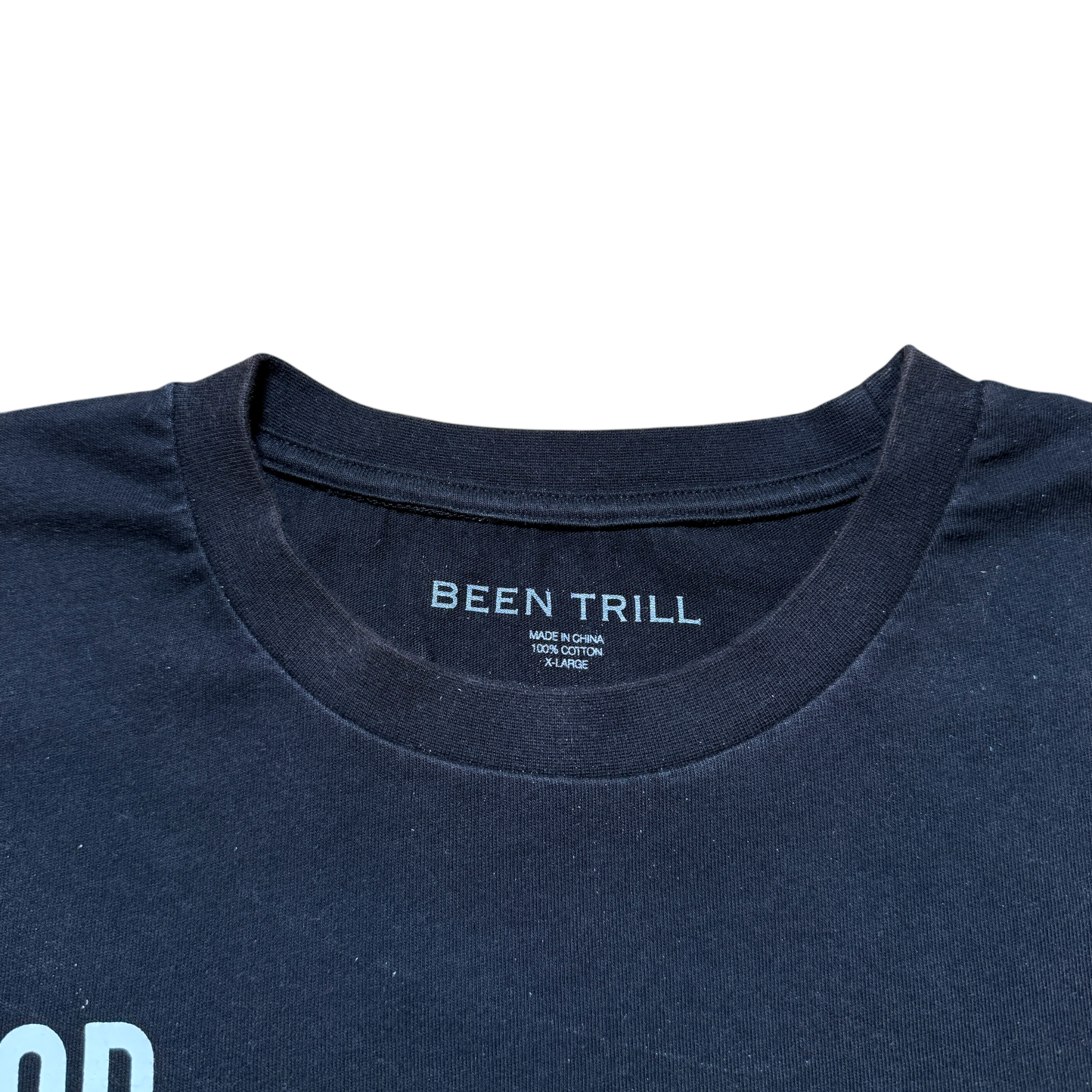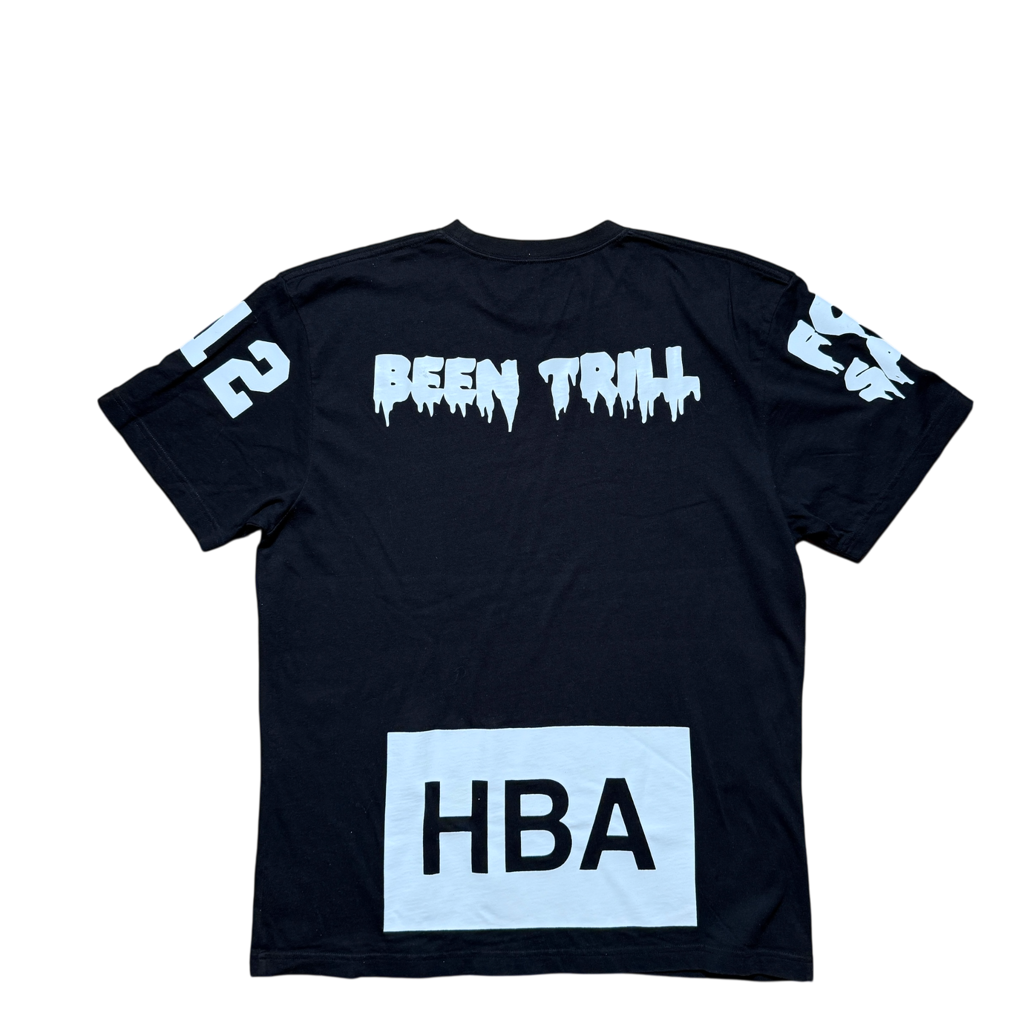 Ondeste collab fra den tidlige 2010ere, hvor Hood By Air og BEEN TRILL begge var med til at definere high fashion-meets-streetwear æstetikken. Fronten bærer det ikoniske HOOD BY AIR-print, mens ryggen kombinerer BEEN TRILLs karakteristiske dryp-typografi med det markante HBA-blockprint nederst. BEEN TRILL tag størrelse XL - fitter Large/XL.