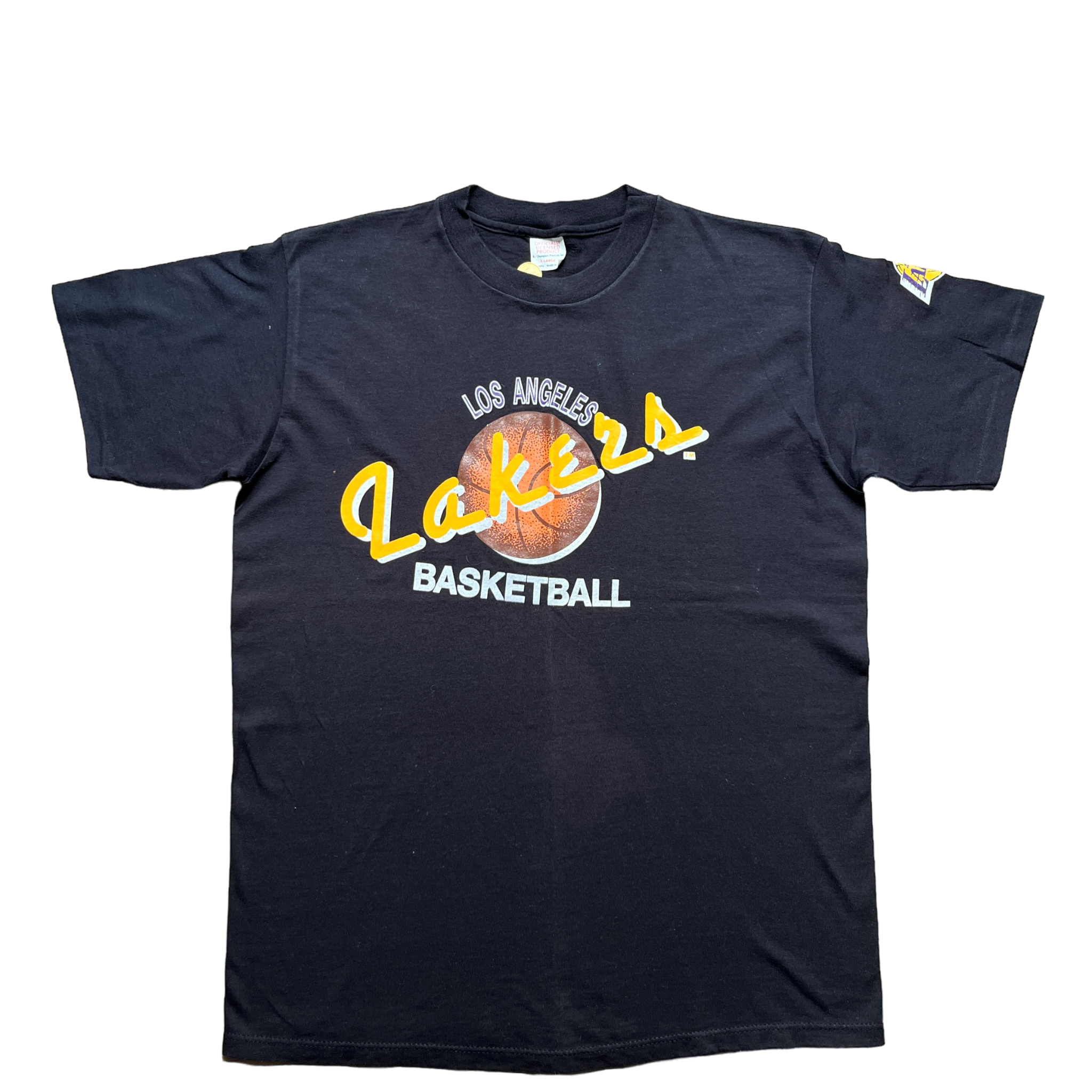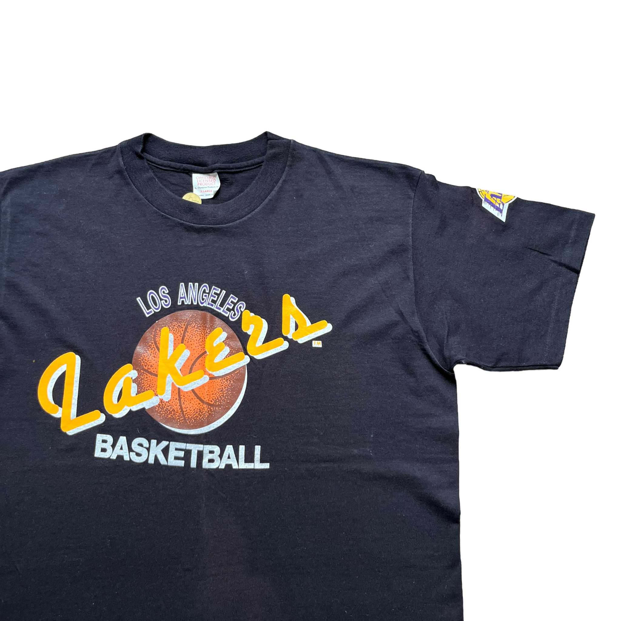 Clean Lakers tee med lille sleveprint. Champion tag størrelse XL. Fitter XL. Single stich.