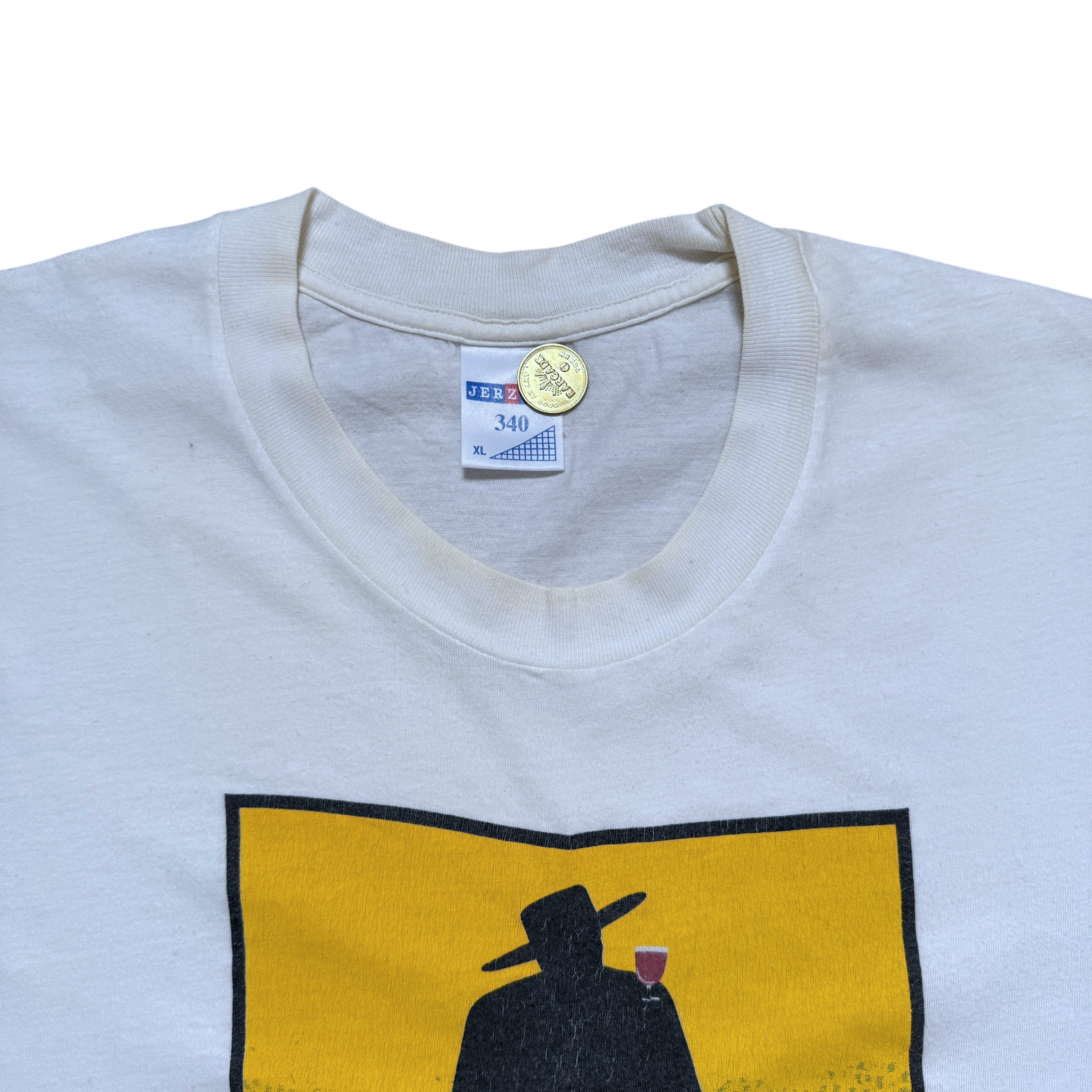 T-shirt med ikonisk Sandeman Porto & Sherry-motiv, oprindeligt designet af kunstneren George Massiot Brown, kendt for sin karakteristiske silhuet af en kappeklædt figur med et glas portvin. Jerzees tag størrelse XL. Fitter XL.