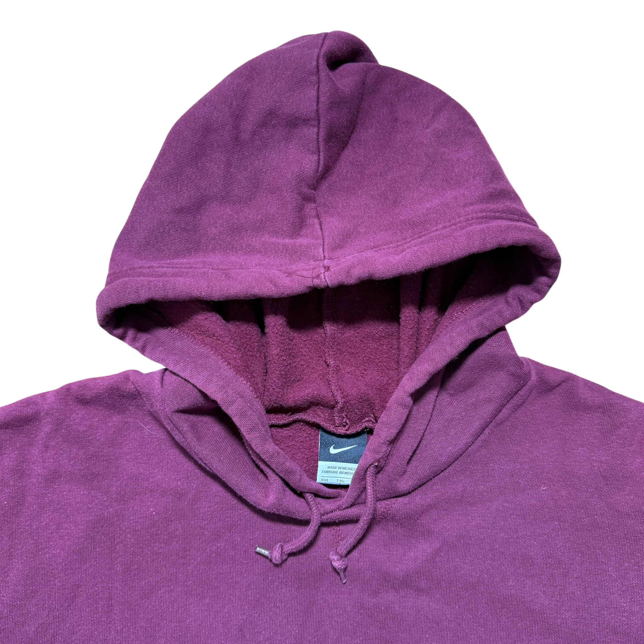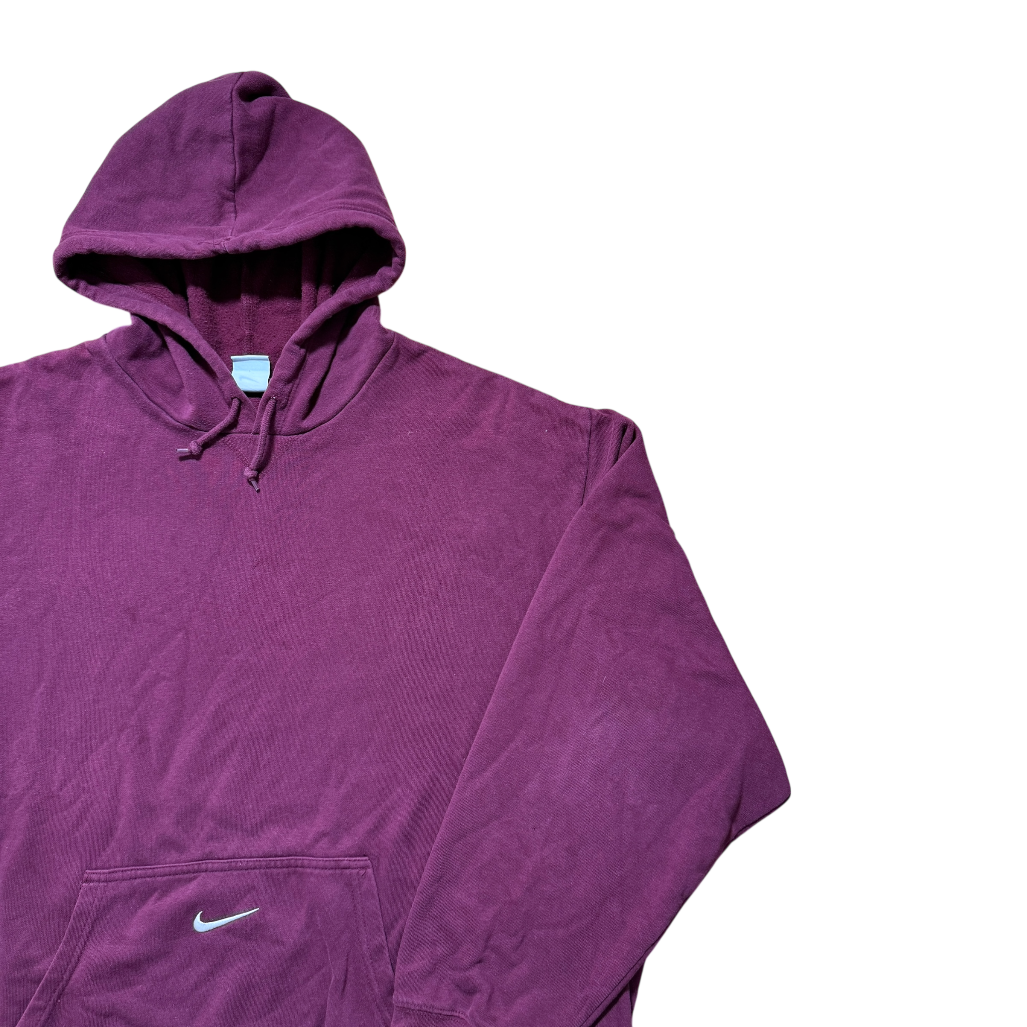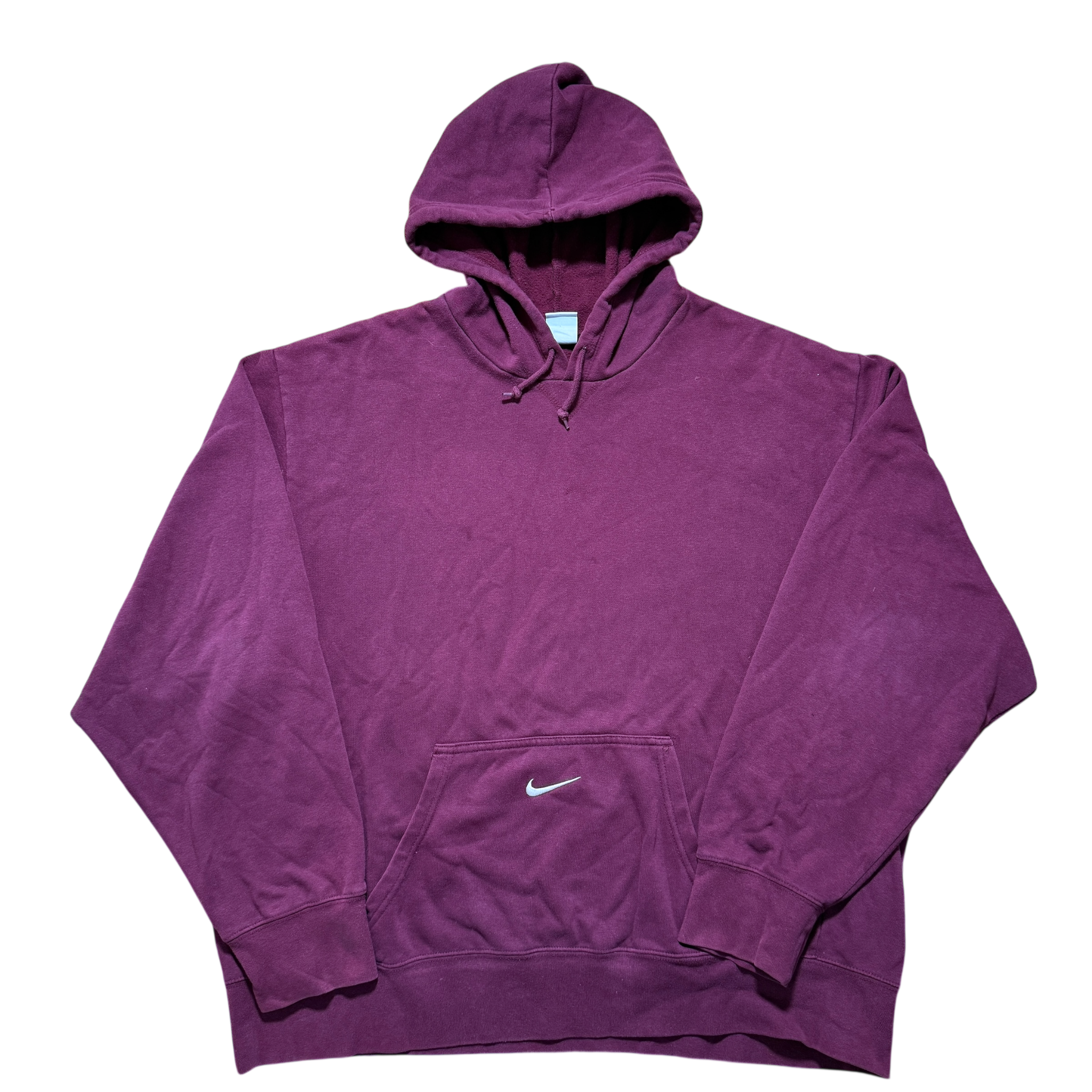 Nike hoodie i bordeaux med broderet center swoosh placeret diskret på forlommen – en tung og enkel klassiker med perfekt boxy fit. Fitter XXL.