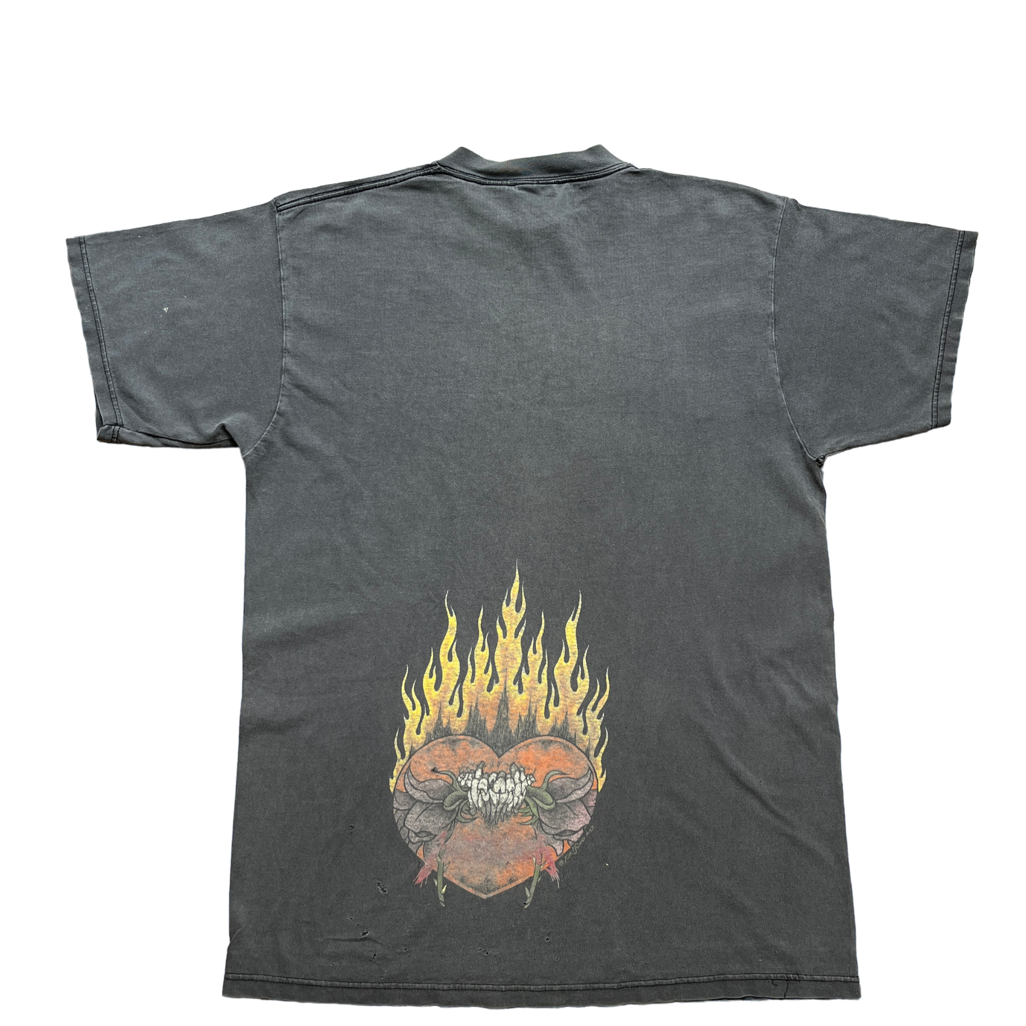Used condition. Perfectly faded. Cracking to print. Few pinholes throughout the shirt.