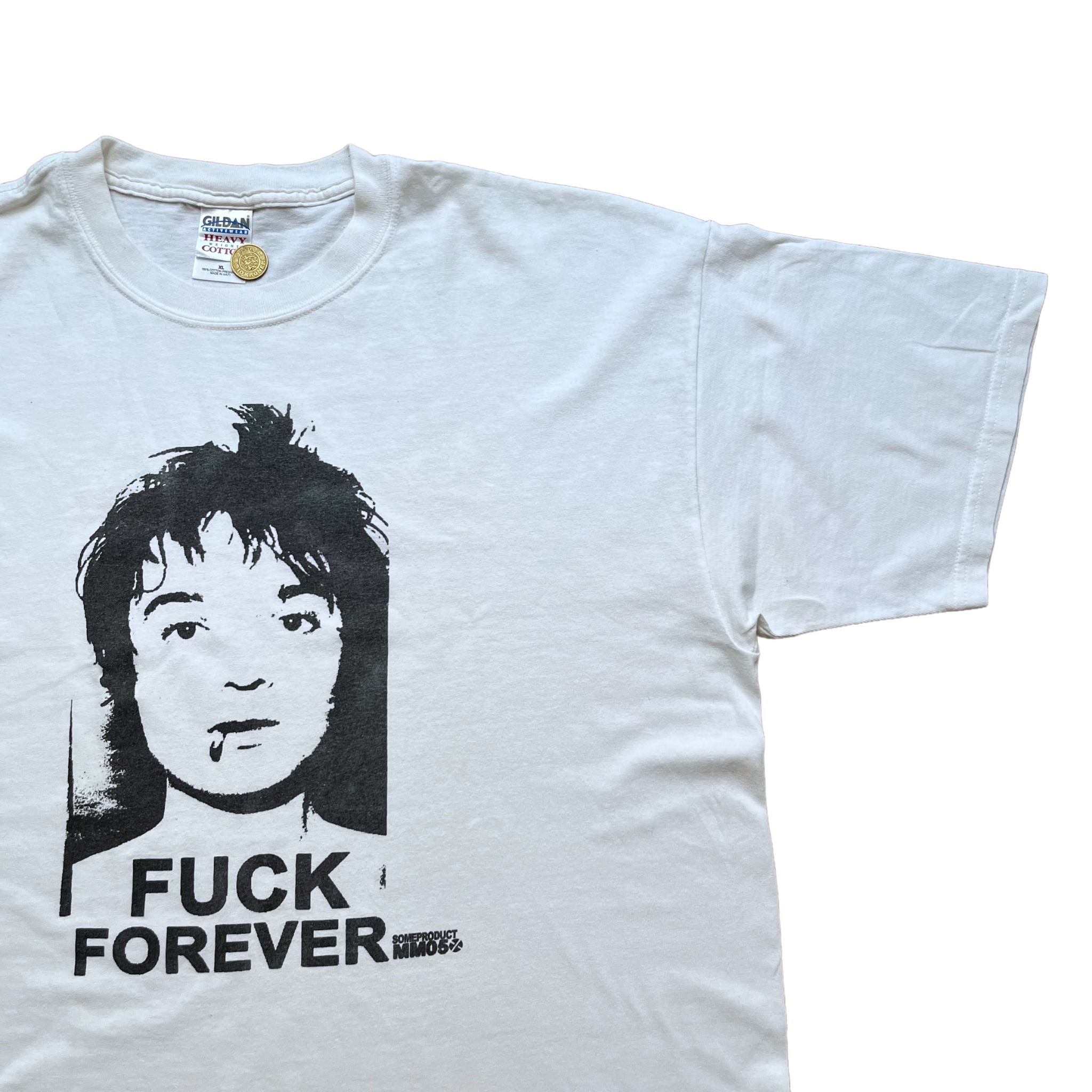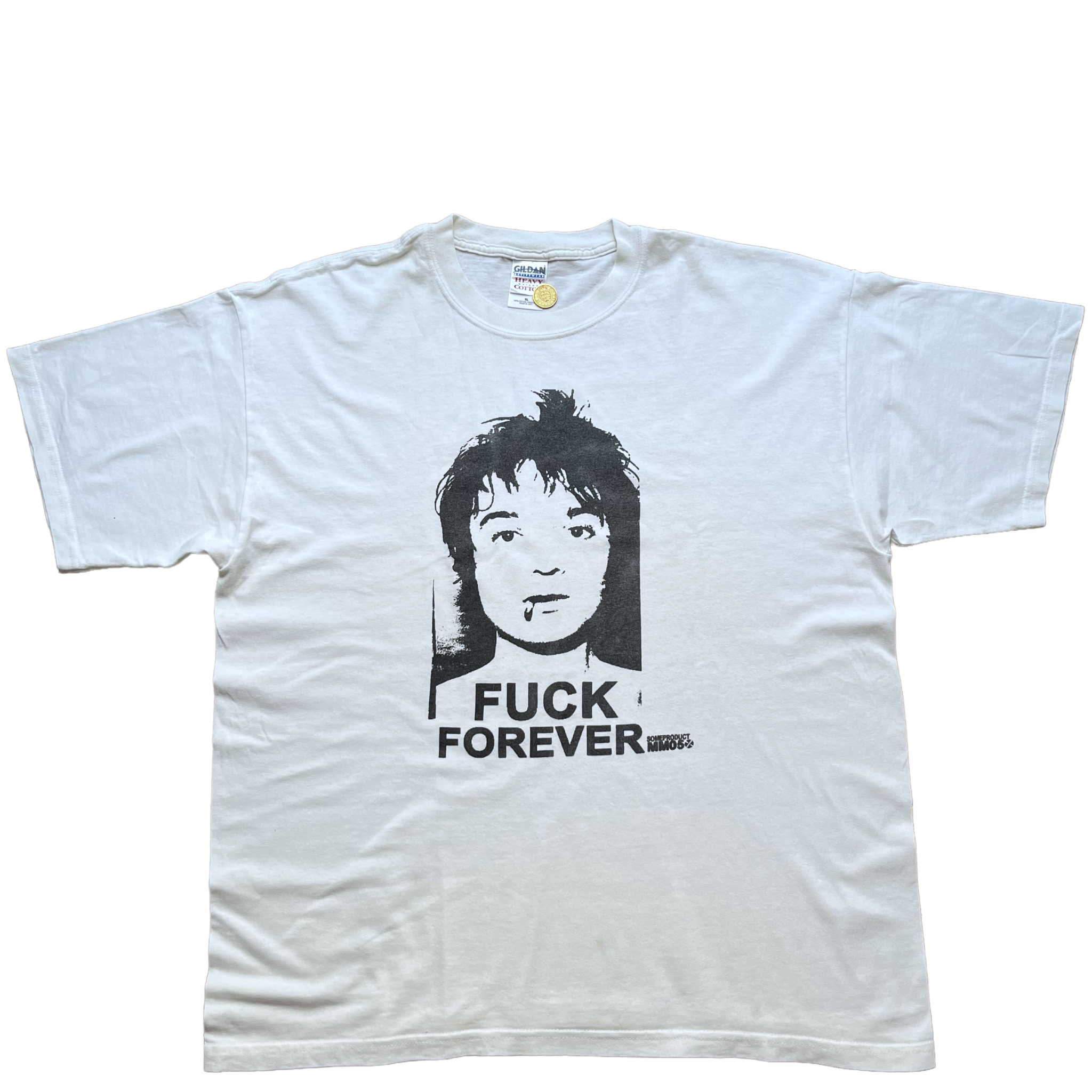 Insane Babyshambles t-shirt featuring the iconic cigarette shot of Pete Doherty as well as the title of their most famous single "Fuck Forever". Gildan tag size XL. Fits XL.