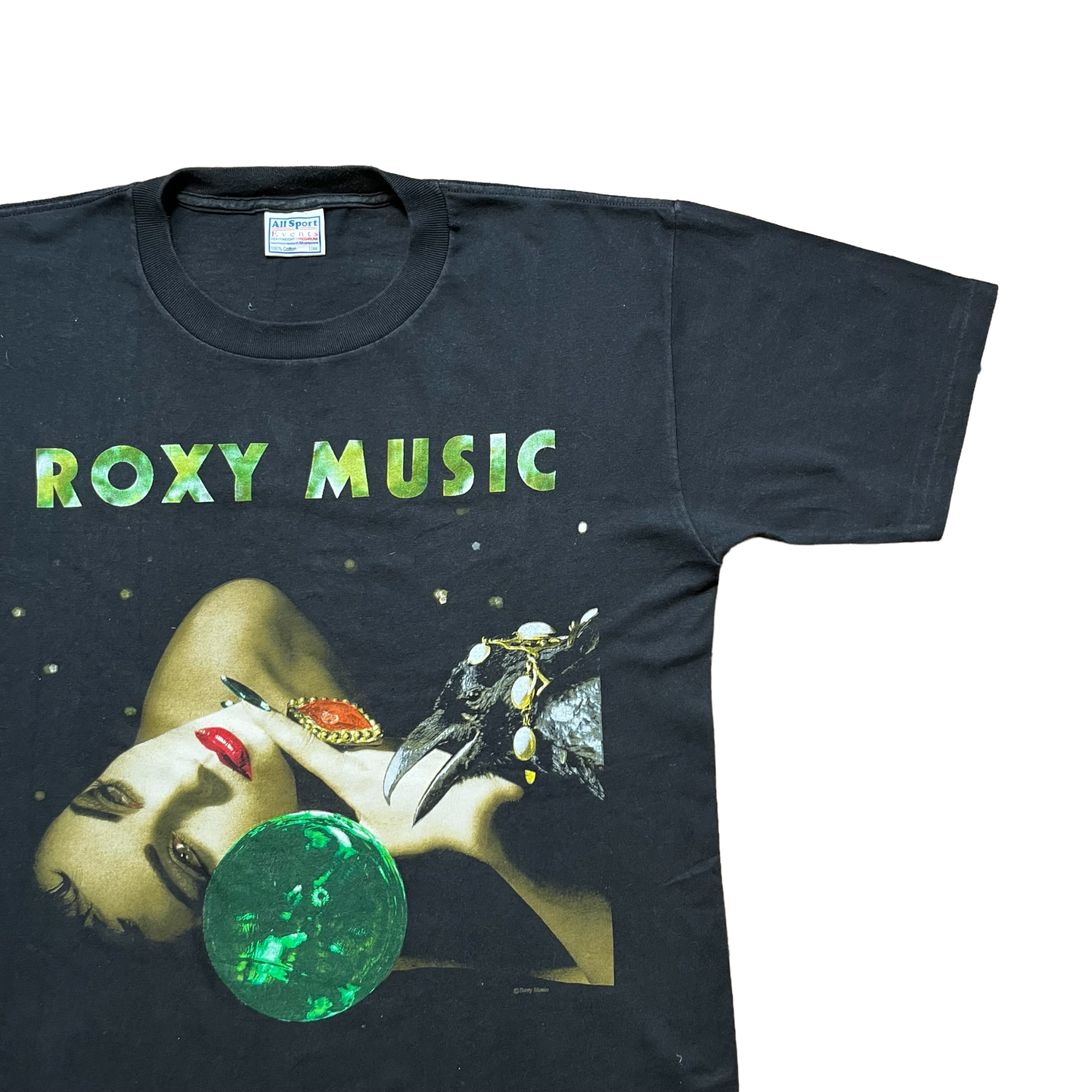 Insane Roxy Music t-shirt with graphics from their 2001 compilation album "The Best of Roxy Music". Roxy Music copyright. All Sport tag size Large. Fits slightly bigger Large. Single stitch.