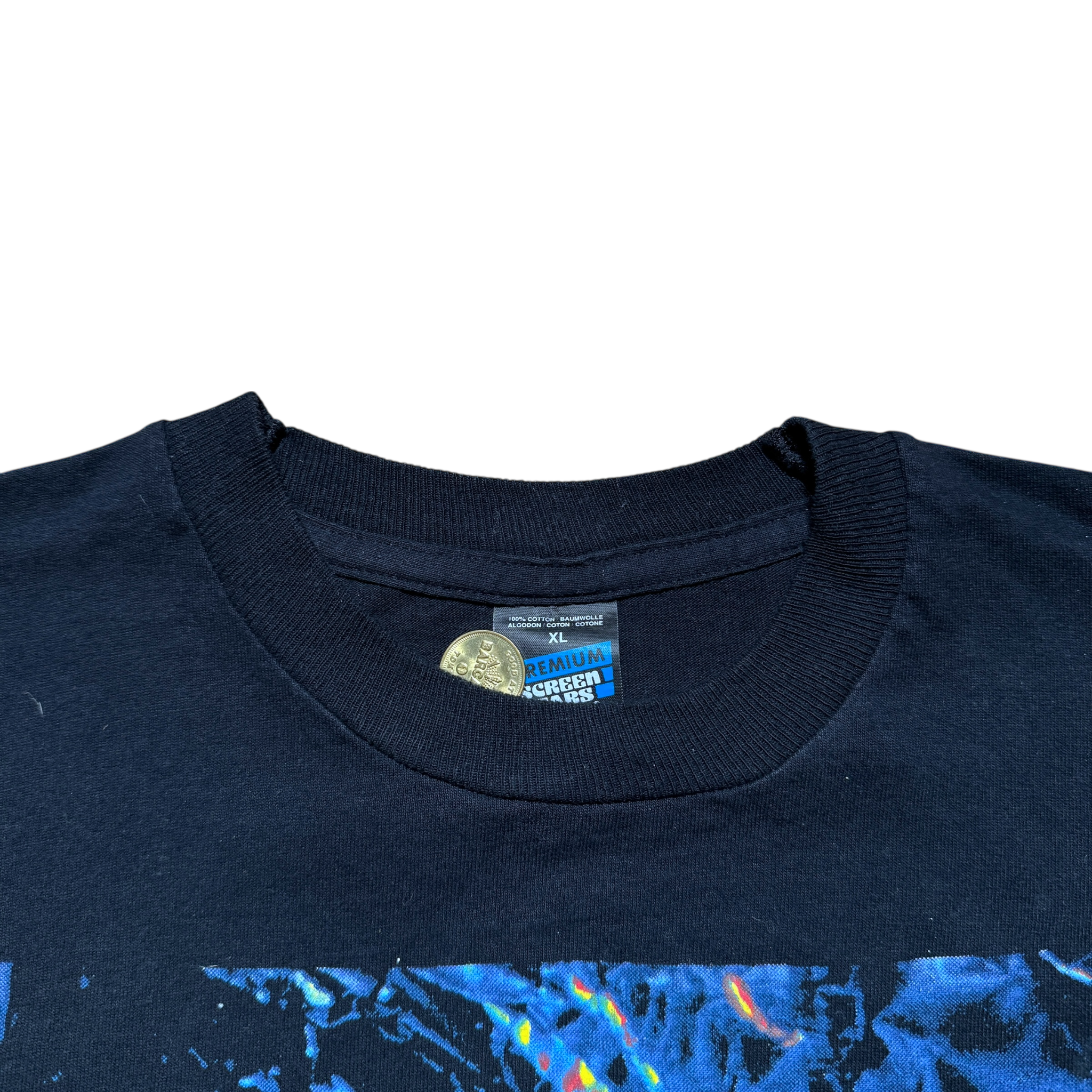 Tour merch from Paul McCartney’s The New World Tour, created during the early 90s era when McCartney returned to full-scale global touring, mixing Beatles staples with standout solo and Wings material. The vivid, abstract artwork appears on both front and back, matching the tour’s distinctive visual identity. 1993 copyright. Screen Stars tag size XL. Single stitch. Fits XL.