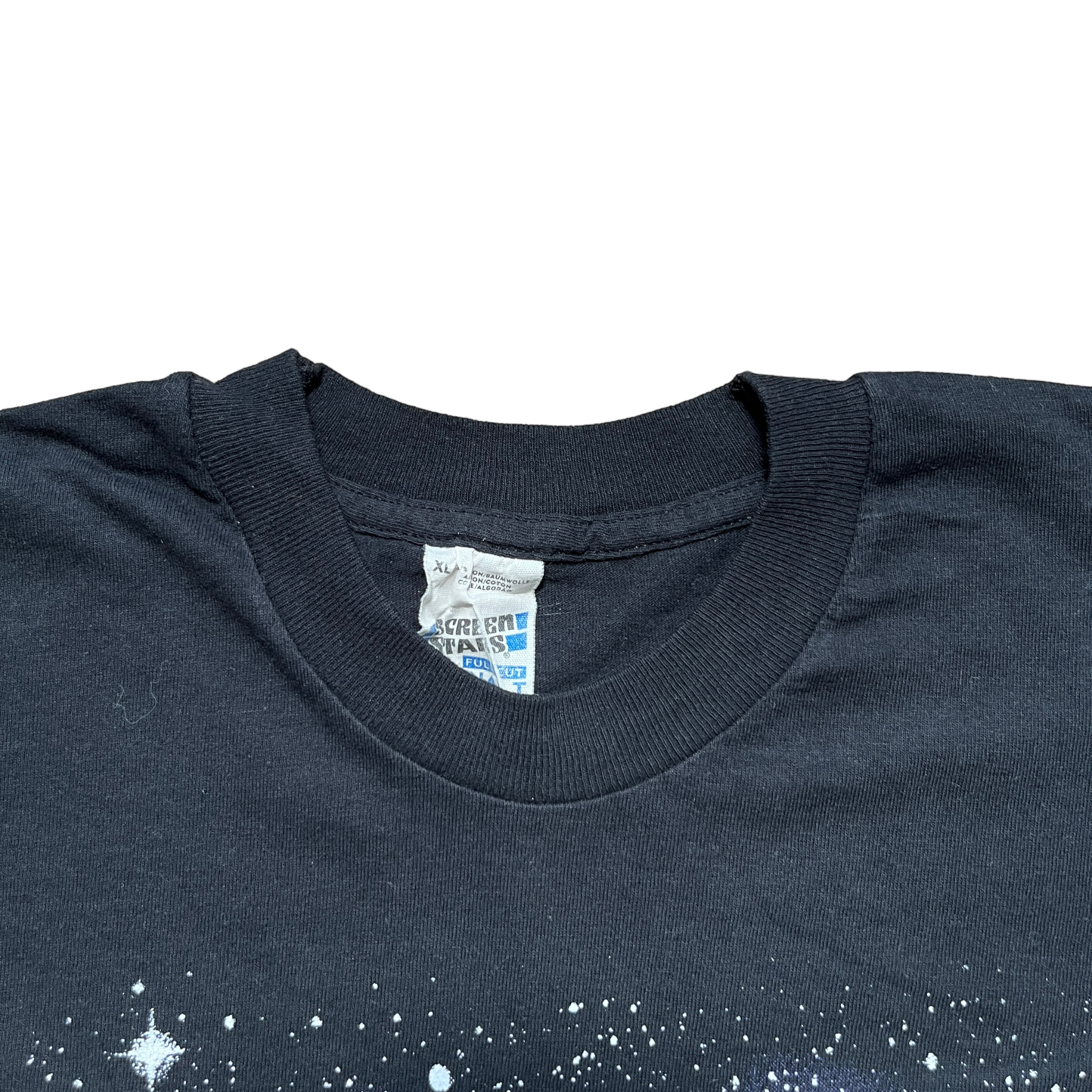 Star Trek: Deep Space Nine t-shirt from 1995 featuring a large front graphic of the space station – a slice of intergalactic nostalgia for sci-fi fans and Trekkies alike. 1995 Paramount Pictures copyright. Single stitch. Fits XL.