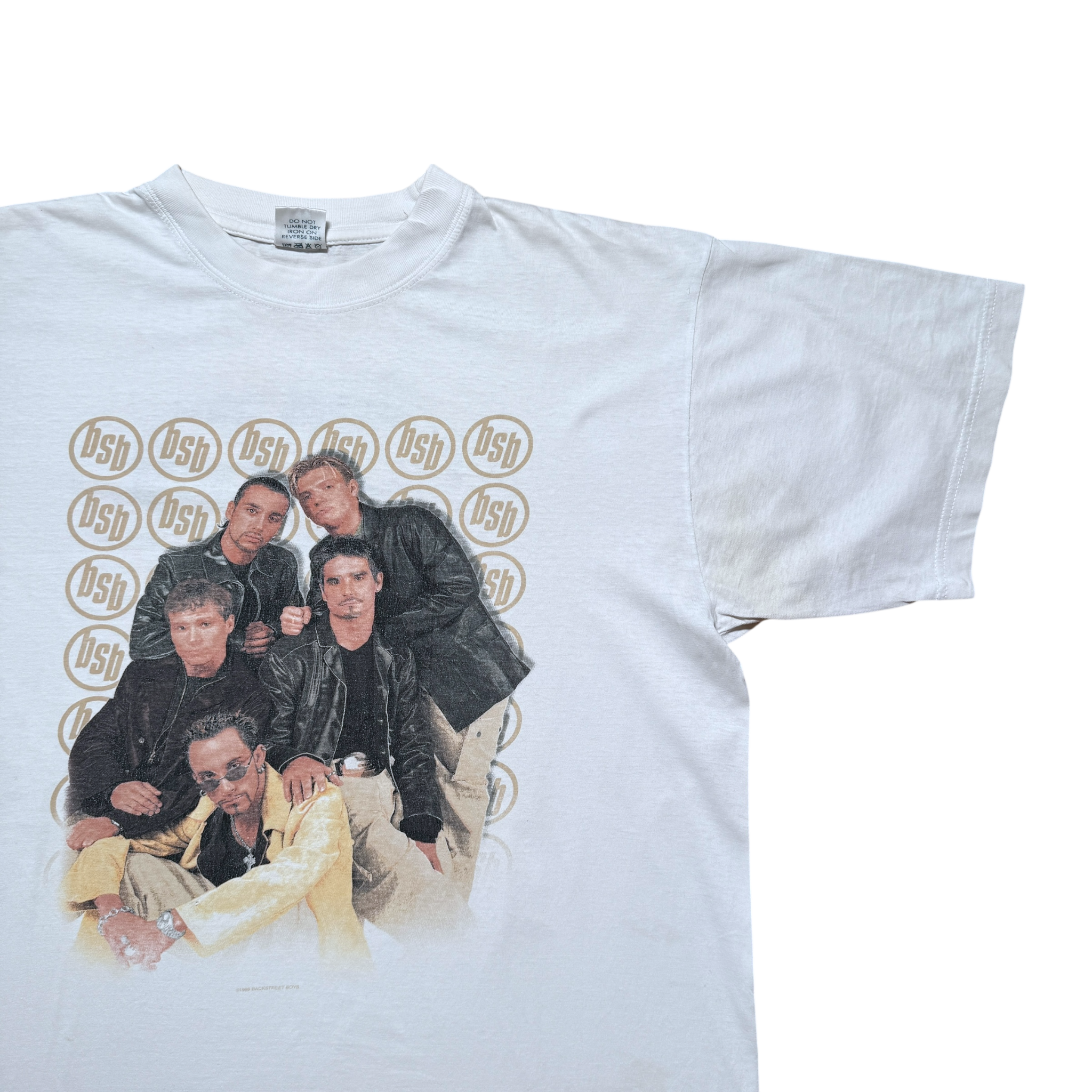 Backstreet Boys t-shirt from the late ‘90s peak era, featuring a classic group portrait on the front and iconic logo on the back. 1999 Backstreet Boys copyright. Single stitch. Fits large.