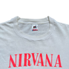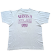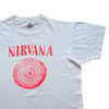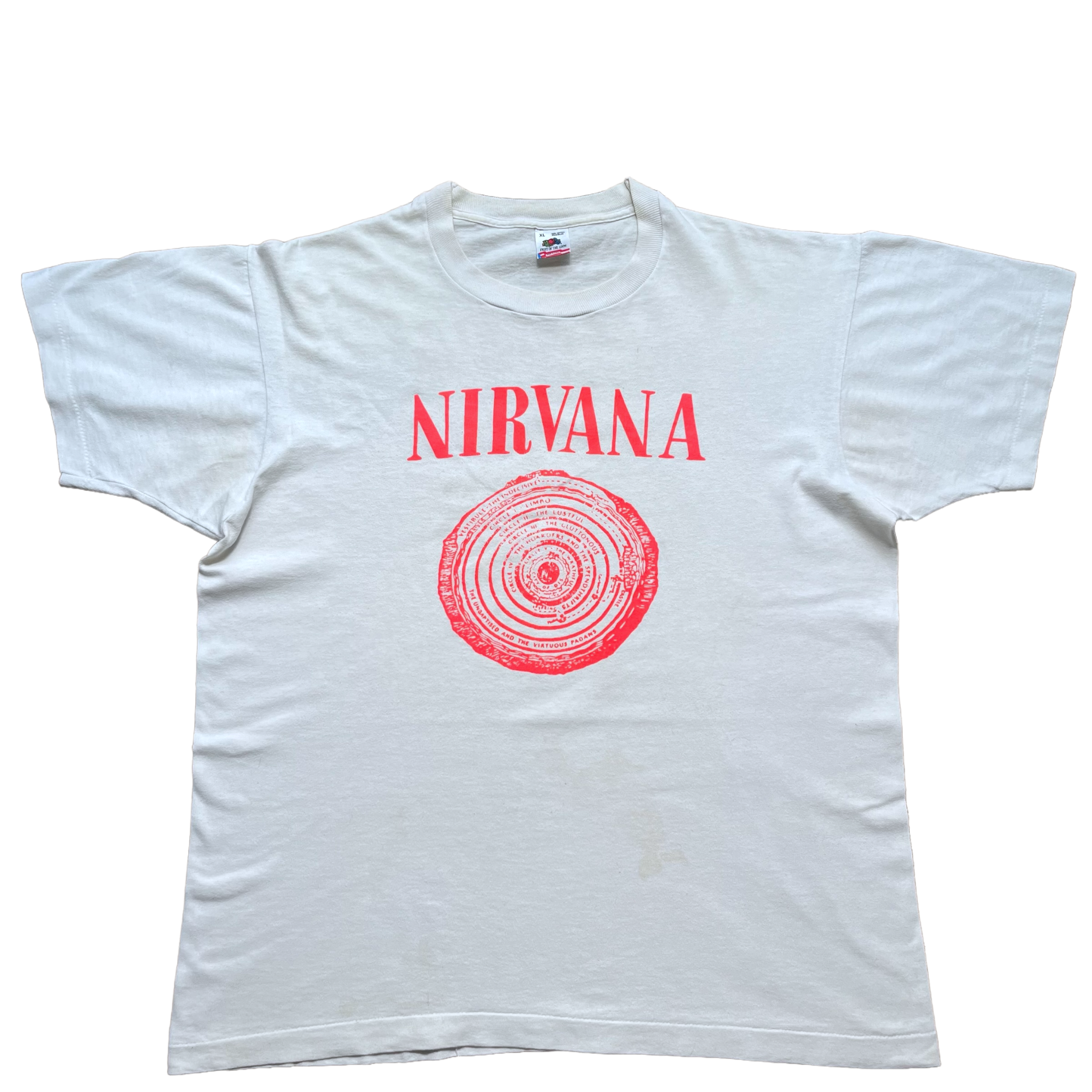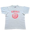 The holy grail of Nirvana t-shirts from 1989. Insane Bleach-era Vestibule with the vibrant orange/purple print. Sub Pop logo on the back.. Fruit of the Loom tag size XL. Fits XL. Single stitch.
